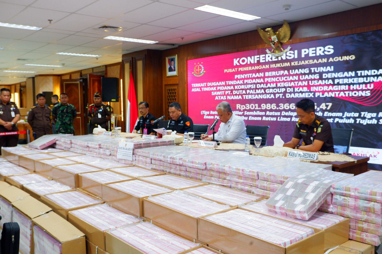 JAKARTA, PARLE.CO.ID — Tim Penyidik Direktorat Penyidikan Jaksa Agung Muda Bidang Tindak Pidana Khusus (JAM-Pidsus) melakukan penyitaan uang sebesar Rp301 miliar, pada Selasa 12 November 2024, dalam perkembangan perkara dugaan tindak pidana pencucian uang dengan tindak pidana asal tindak pidana korupsi pada kegiatan usaha perkebunan sawit yang dilakukan oleh PT Duta Palma Group di Kabupaten Indragiri Hulu.